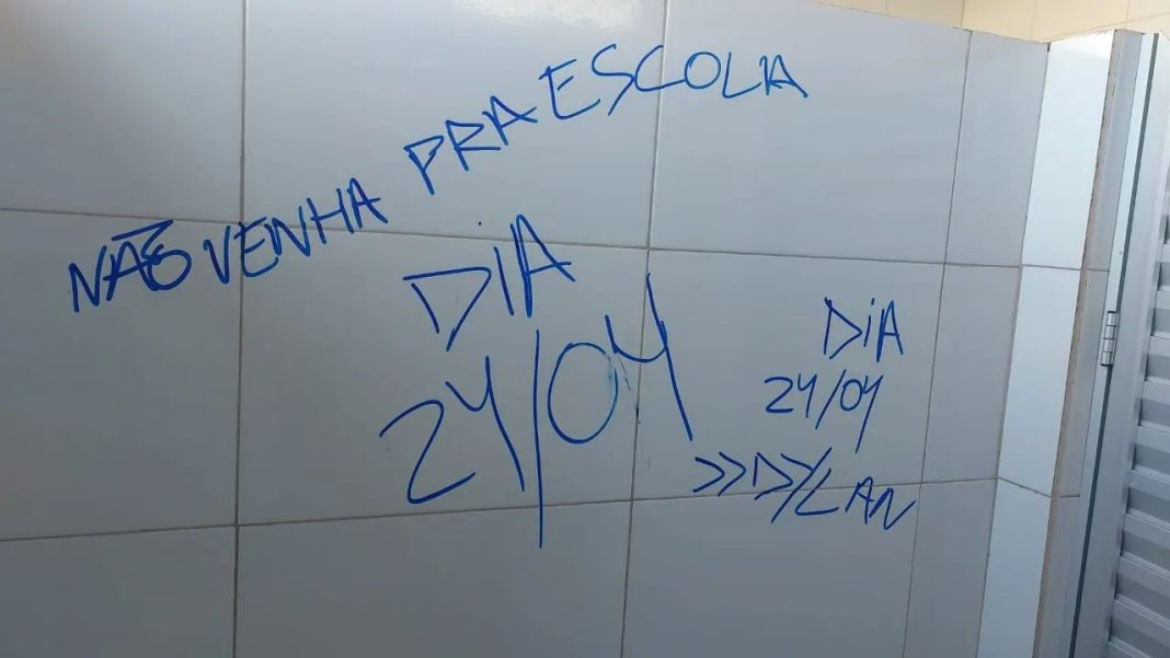 Polícia cumpre mandado de busca e apreensão após pichação em escola mencionar atentado de Columbine.