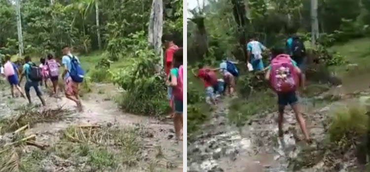 Um vídeo gravado por um morador da região, que mostra a dificuldade enfrentada pelas crianças e adolescentes para chegar à escola, viralizou nas redes sociais. Nas imagens, é possível ver estudantes e outros moradores da comunidade pisando na lama, se sujando e arriscando suas vidas para chegar à instituição de ensino.